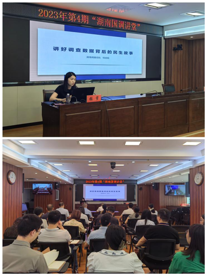 根据湖南调查总队党组深入开展学习贯彻习近平新时代中国特色社会主义思想主题教育工作安排,为切实提高系统青年干部的分析研究撰写能力和统计决策服务水平,9月7日,湖南调查总队举办2023年第4期“湖南国调讲堂”,邀请总队综合处副处长张蜜作了题为《讲好调查数据背后的民生故事》的统计分析研究专题讲座。总队党组成员、副总队长、机关党委书记李建伟出席并讲话。