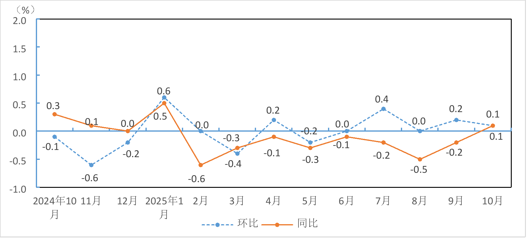 图1 湖南居民消费价格涨跌幅(2024.10-2025.10,单位:%)