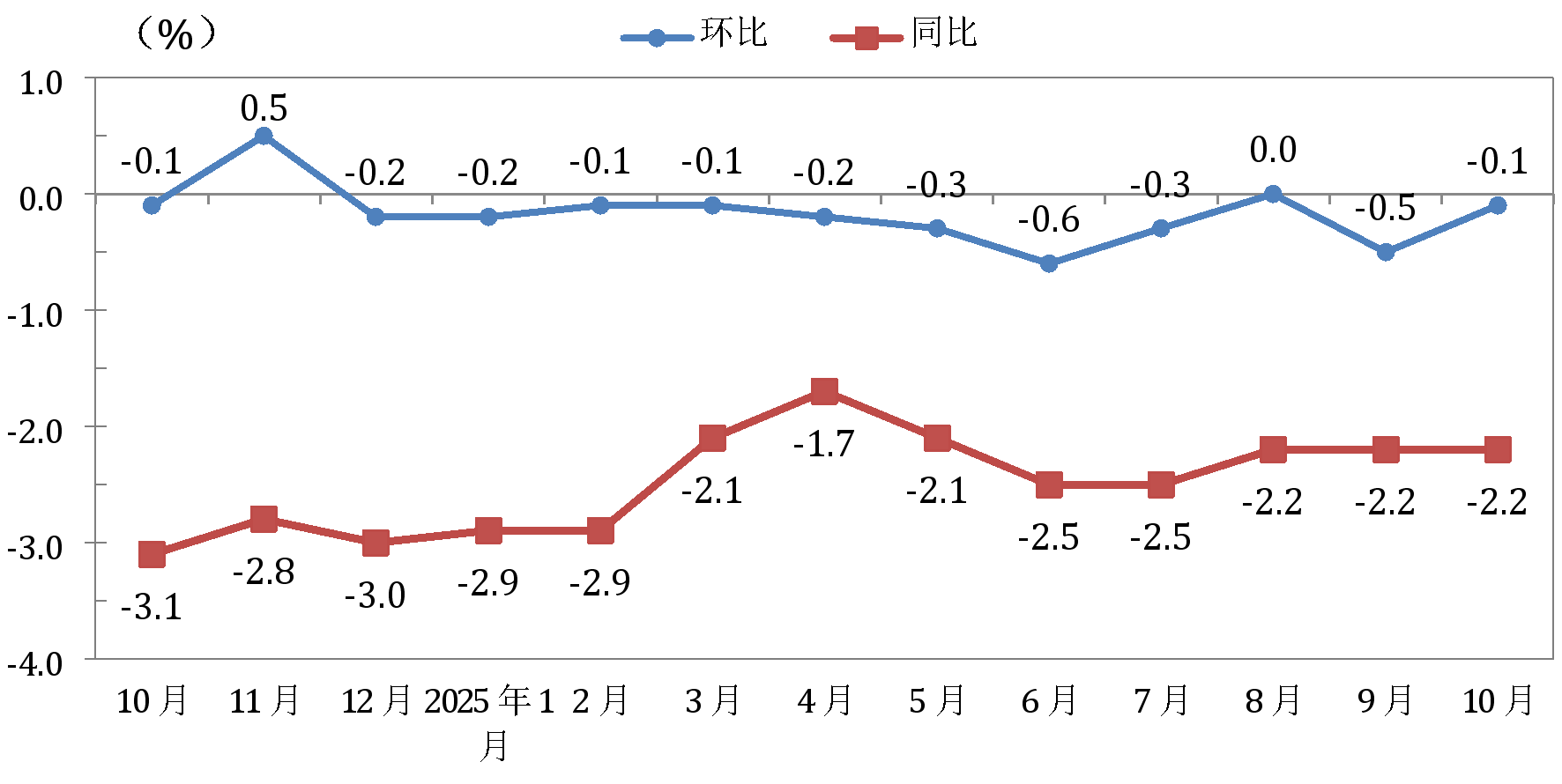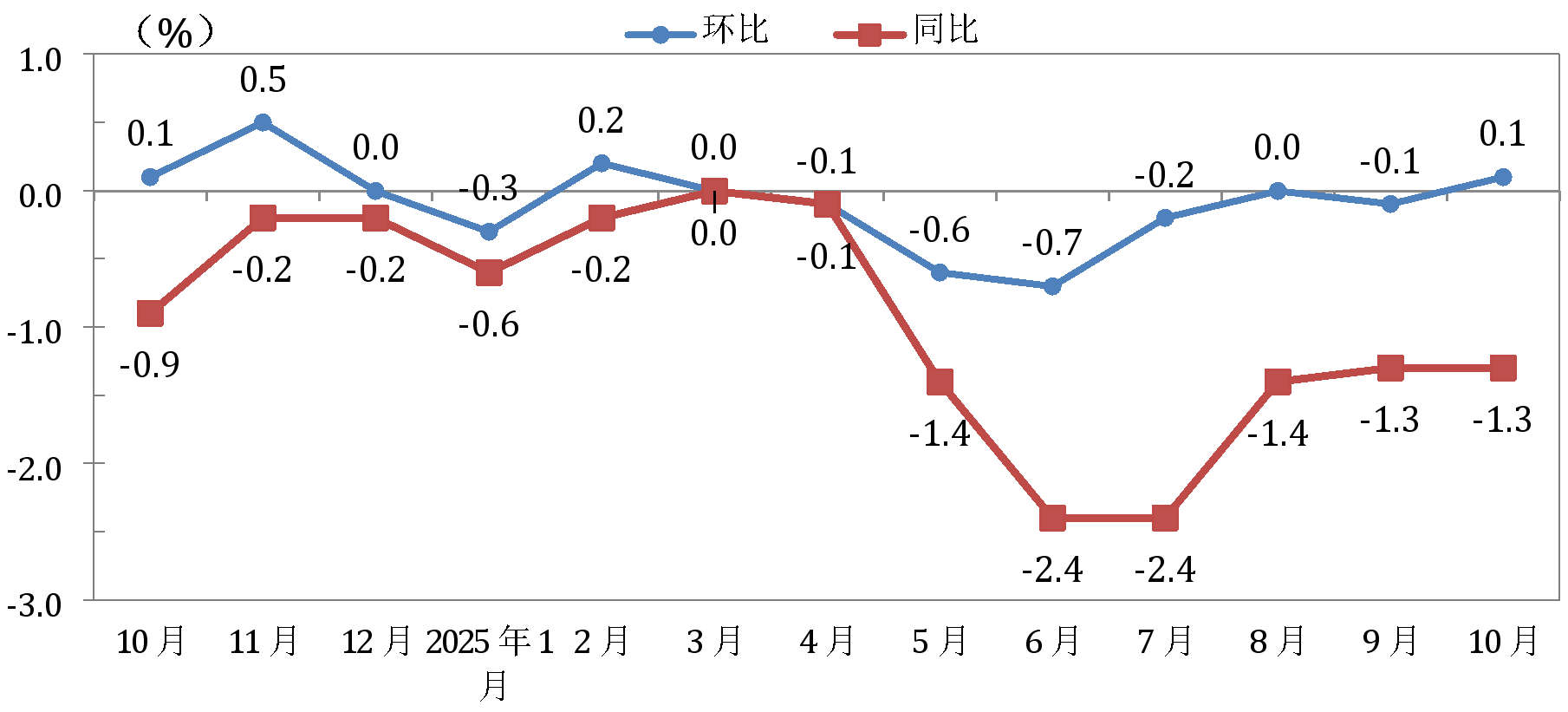图1 工业生产者出厂价格涨跌幅(2024.10-2025.10)
